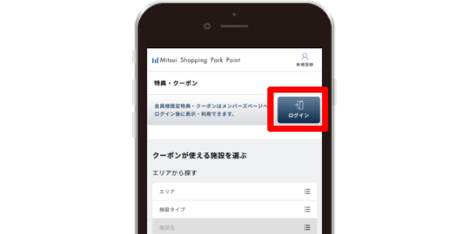 連携完了後は、三井ショッピングパークポイント クーポンページにログインし、クーポンの利用を開始します。 ご利用方法等の詳細についてはこちら
