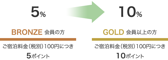 さらに、年度内のご利用実績に応じて会員ステージがGOLD以上にアップすると、付与率も10%にアップします。